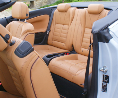 Szóval kívülről igen nagy autó a Cascada, nem is győzi hangsúlyozni a gyár, hogy ez már bizony középkategóriás típus. És ha elkezdjük közelebbről szemlélni a részleteket, kiderül, igazuk van. Kivillan ugyan itt-ott a műszerfal műanyagja, de a nem spóroltak a dupla díszvarrással feldobott fekete bőrrel sem, ami a műszeregység feletti árnyékolót borítja. Kabrióról lévén szó, az üléseket szerencsére már nem fekete – a napon pillanatok alatt felforrósodó – bőrhuzat borítja, hanem szép vörösesbarna. Aggódni egyébként nem kell, van üléshűtés is.