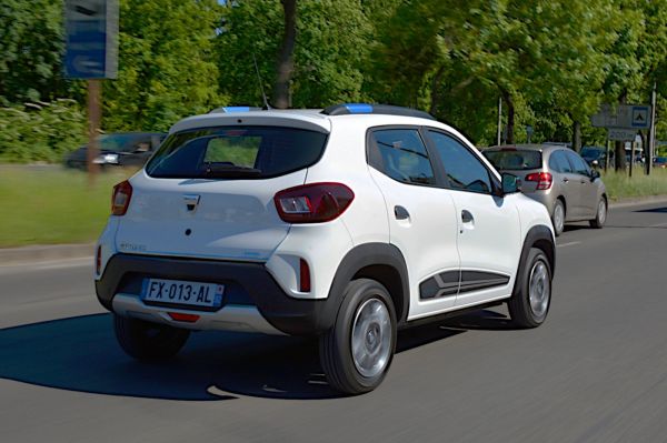 Az első kerekeket hajtó villanymotor 44 lóerős csúcsteljesítményét nem szabad lebecsülni, mert 125 Nm-es maximális nyomaték tartozik hozzá, városban a forgalom ritmusát még úgy is lehet tartani, hogy ECO-módba kapcsolunk, ekkor az elektronika 31 lóerőre veszi vissza a teljesítményt. Nagyjából országúti tempóig képes könnyedén növelni az iramot a kis Dacia, előzésekre ne nagyon gondoljunk, gyorsforgalmi utakon és autópályán már szenved. Papíron 125 km/órás végsebességet tud a Spring, óra szerint 130 km/óra a maximum, a sebesség további növelésétől hibajelzéssel és teknős-visszajelző lámpával próbálja elvenni az ember kedvét az elektronika – teljesítménycsökkenés nincs, és a hibajelzés is eltűnik, amint visszaveszi az ember óra szerint 130 km/órára a tempót. Ha nem nagyon forszírozzuk, a kamionok tempóját lehet tartani, és ez az egyik titka a viszonylag jó hatótávolságnak. A 27,4 kWh kapacitású teleppel 230 km-t ígérnek, amit különösebb odafigyelés nélkül elérhetünk. Egyszerű konnektorról 8:28-13:32 óra közötti töltési időt ígérnek, legfeljebb 30 kW-os teljesítménnyel végezhető a villámtöltés.