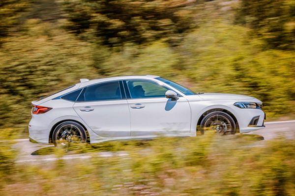 Mivel a típus mindig is a vezetőorientált kompaktok közé tartozott, kíváncsian vártam, hogy mit tud a 2,0 literes benzinmotor köré épülő, új hibridhajtás – ez a rendszer egyszerre váltja le az 1,0 és 1,5 literes benzineseket. A hajtási koncepció azonos a többi e:HEV Hondáéval, vagyis a benzinmotor alapvetően áramtermelőként funkcionál és csak bizonyos helyzetekben, egy kuplung zárásával hajtja közvetlenül az első kerekeket. Itt viszont van egy lényeges változás: a Civic váltásokat szimulál, vagyis padlógázra nincs fix fordulaton üvöltő motor, a fordulatszám a gyorsulással arányosan emelkedik, majd kicsit csökken, így aztán az egész nagyon közvetlennek hat. A másik újdonság, hogy a 41%-os termikus hatásfokkal büszkélkedő, önmagában 143 lóerős benzines kanyargós útszakaszon a fordulók előtt nem feltétlenül áll le, hogy felkészüljön a kigyorsításra. A 184 lóerős rendszerteljesítmény miatt az erőre nem lehet panaszunk, miközben a Civic azon kevés autó közé tartozik, amely – az első próba alapján – a valóságban is tudja hozni a gyári fogyasztási adatot (4,7 l/100 km). Akinek a spórolás külön játék, az élvezheti azt is, hogy aktív navigáció esetén a hajtás „olvas” a domborzati viszonyokból és például egy lejtő előtt el tudja használni az összes energiát az akkuból. A futóműről és a kormányzásról szintén csak szuperlatívuszokban lehet beszélni, de az alacsony súlypont is felelős azért, hogy az új Honda sportos vezetési stílus mellett se okozzon csalódást.