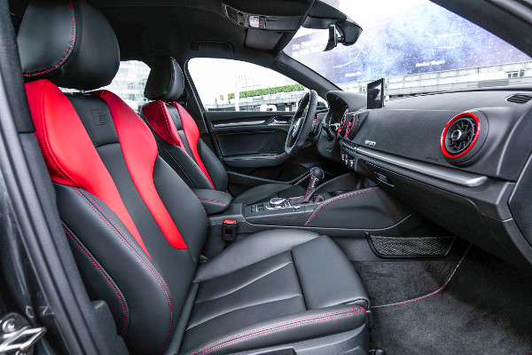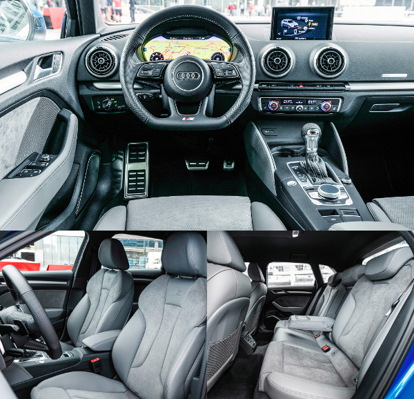 Mérsékelten sportos az S3-asok beltere, a komfortszint nem szenved csorbát A hang azért árulkodó, és nem is az alsó tartományban: 4000 felett jellegzetes háromhengeres tónusban szól az 1.0 TFSI. A másik új motor, a 2.0 TFSI nagyon más világ, még akkor is, ha nyilvánvalóan nem lesz olyan népszerű, mint a hengerlekapcsolásos, 150 lovas, 1,4-es TFSI. Az opcióként quattro-hajtással (mivel keresztmotoros az A3-as, ezért Haldex-rendszerű) is elérhető 2,0 literes 190 lóerőt és dízeles nyomatékot, 320 Nm-t produkál, amivel már illik az A3-asra a sportos jelző. Gyakorlatilag a teljes fordulatszám-tartományban elemében van a motor, ráadásul csendes és kifinomult. Aki igazán combos kompakt Audit szeretne, annak az S3-as lehet az ideális választás. Mindegy, hogy melyik karosszériáról beszélünk, a 2,0 literes, turbós blokk immáron 310 lóerőt és 400 Nm-t (+10 LE, +20 Nm) teljesít, a produkció pedig nemcsak papíron, hanem a valóságban is meggyőző, az S3-asok ugyanolyan harmonikus darabok, mint a mezei A3-asok, csak éppen sokkal erősebbek. Érződik az S3-ason, hogy nem egy kompromisszummentes sportkocsit akart építeni az Audi, inkább a hétköznapi használatban sem elvérző, erős modellcsaládként tekinthetünk rá. Csupán a hangélmény hiányzik – erre minden bizonnyal a később bemutatkozó, alublokkos öthengeres RS 3-as érkezéséig várnunk kell.