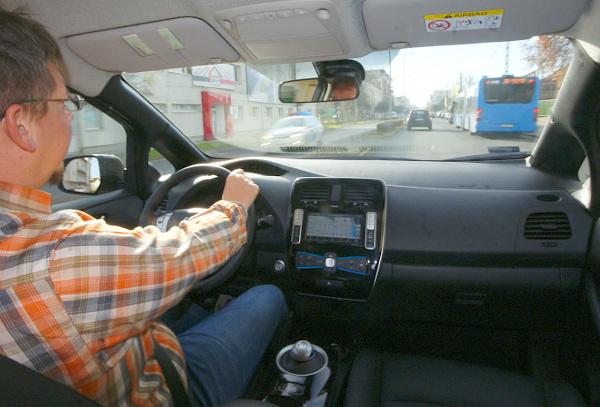 Azon kevés tesztvezetés közé tartozik a nagyobb kapacitású akkumulátorral szerelt Nissan Leaf próbája, ahol szándékosan a reggeli csúcsforgalomba vittek minket – nehezítő körülményként Budaörsről indultunk reggel 9-kor, és az M1/M7 bevezetőn keresztül vezetett utunk.