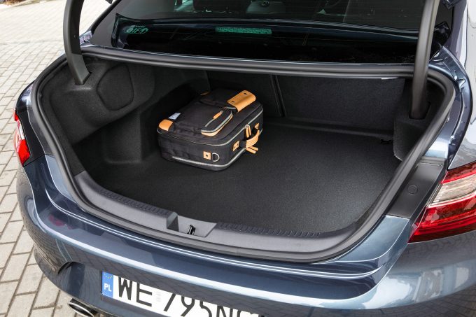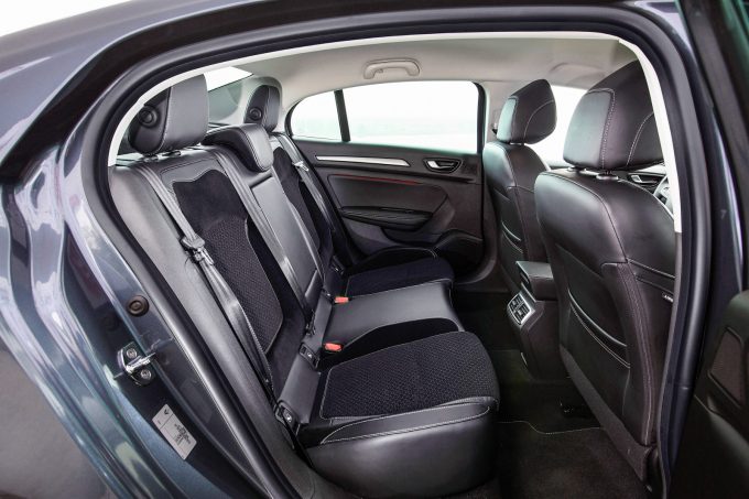 Már a Fluence próbált a kupés tetővonallal vevőket csábítani, a sofőrös limuzinként hirdetett előd trükkje a magasra húzott far volt, a Grand Coupé viszont tényleg lejtős tetővonallal áll be a sorba. Jobban sikerült a karosszéria megtoldása. Ez szó szerint értendő, a hátsó tengelyig megegyeznek az ötajtóssal, de annak 384 literes csomagtartója helyett 550 litert, igaz, kisebb nyílást és bővíthetőséget ad. Nem érheti kritika a formatervet, elegáns a vonalvezetés, egységes a dizájn, jól áll a lépcsős hát a negyedik generációnak. Az első LED-es lámpákra rímel az emblémáig benyúló, nappali menetfényként állandóan világító fénycsík, akárcsak a ferdehátún. A rövid fedél távirányítóról, belülről és láblendítéssel is nyitható. Nem butították le a beltér anyagait, minden ugyanolyan, mint ahogy a Megane-ban megismertük, a jobban felszerelt kivitelekben ott van a tabletszerű középkonzol, az üzemmódválasztó kapcsoló, a masszázsülés és a hangulatvilágítás, sőt, van nyitható üvegtető és kormányfűtés is. Kulcskérdés a helykínálat, mert a Mercedes-Benz CLS és CLA, a Volkswagen CC és a BMW 6-os GranCoupé hátsó fejtere is jelképes. 175 centis magasságommal kényelmesen elférek benne hátul, de a hevesen lejtő tető alatt nem sok hely van, cserében franciásan komfortosak az ülések és minden más irányban bőséges a hely; a Renault szerint a kategória legnagyobb vállterét kínálja, és a lábtér is nagyobb 37 mm-rel, mint az ötajtósban.