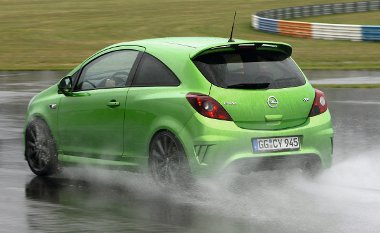 Igyekeznem kellett, hogy tartani tudjam a lépést, eközben végig a segítségemre volt a pontos kormányzás, a jó tapadásnak köszönhetően hamar el tudtam kezdeni a kigyorsítást, és a fékek is egészen jól viselték a nedves burkolatot. A szakadó esőre való tekintettel előre mondták, hogy ne kapcsoljam ki az ESP-t. Megfogadtam a tanácsot, de tulajdonképpen felesleges volt. Az önzáró differenciálmű miatt áthangolták az elektronikus felügyeletet, így az még esőben sem érezte szükségét a beavatkozásnak – pedig egyszer még keresztbe is álltam, amikor az éles visszafordulásnál hirtelen megtapadt az első kerék, és behúzta az ívre az orrát a Corsa, a hátsóját meg a lendület vitte tovább. Az ESP meg se nyikkant, hagyta, hadd tomboljam ki magam.