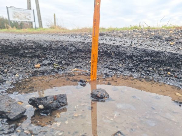 Sorra kapnak defektet az autók a vármegyénk útjain. Több olvasónk is jelezte, hogy Dad és Tata közötti, eddig is nagyon rossz állapotú úton gigakátyúkat próbálnak kerülgetni. Kisebb-nagyobb sikerrel. Ugyanis többen is defektet kaptak a sokszor kikerülhetetlen méretű, és egymás mellett lévő gödrökben. A Kemma.hu munkatársai mérőszalagot ragadtak és végig járták a Tata-Kocs közötti utat kátyúkat keresve. Az eredmények megdöbbentők voltak: nem ritka a 13-14 centiméter mély gödör, amik sokszor egymáshoz közel sorakozva szinte kikerülhetetlen akadályt képeznek. De a Tata-Komárom úton sem volt jobb a helyzet: Bácsi László Komárom felé haladt a hátsó tatai úton, amikor a 9-es kilométer magasságában egy kátyú miatt két kerekük is defektes lett.
