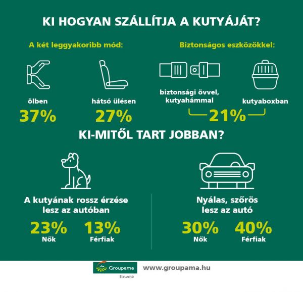 Magyarországon minden második felnőttnek van kutyája, a kutyatartók 57 százaléka pedig szokta szállítani négylábúját, vagyis minden második kutya utazik autóval bizonyos időközönként – derül ki a Groupama Biztosító országos, reprezentatív kutatásából. Ugyanakkor csupán elenyésző számban rögzítik őket biztonságosan, és ez nem csak a kutya, de az utasok, sőt más autósok biztonságát is veszélyezteti.