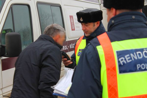 Négy rendőrautó, parkoló járművek, intézkedő egyenruhások: már távolról látszott a közlekedési akció. Egy 16 méteres, 430 lóerős Ivecot is megvizsgáltak a rendőrök, s a raktér sem kerülte el a figyelmüket.