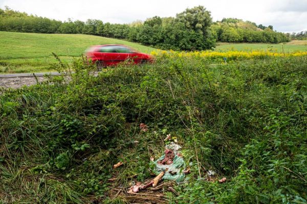Gyakori volt az útszélére kidobott, zsákba csomagolt háztartási vegyes hulladék is. Több helyen hegyekben állt a bűzölgő, fekáliával borított ruhadarab, de még egy állati tetem, egy sertés maradványai is csupán néhány méternyire voltak az úttesttől.