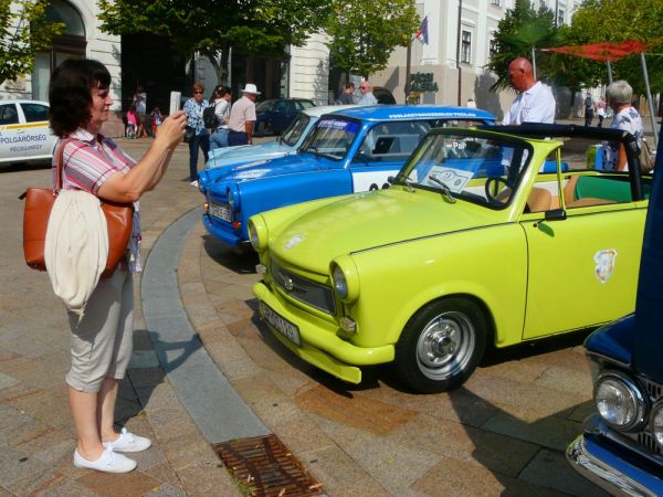 A környékből és messze földről egyaránt érkező autók és motorok délelőtt tízkor gurultak be a baranyai megyeszékhely főterére, majd sorban leparkoltak, illő távolságra egymástól, hogy a szép számú nézősereg kedvére körbejárhassa őket. Volt is mit csodálni, a gyönyörűen karbantartott, csillogósra suvickolt járművek megannyi emléket idéztek fel az idősebbekben, a fiatalok nagy szemeket mereszthettek, hogy léteztek még autók beépített fedélzeti számítógép nélkül, a gyerekek pedig sok-sok krómozott felületen pillanthatták meg tükörképüket.