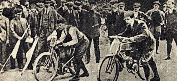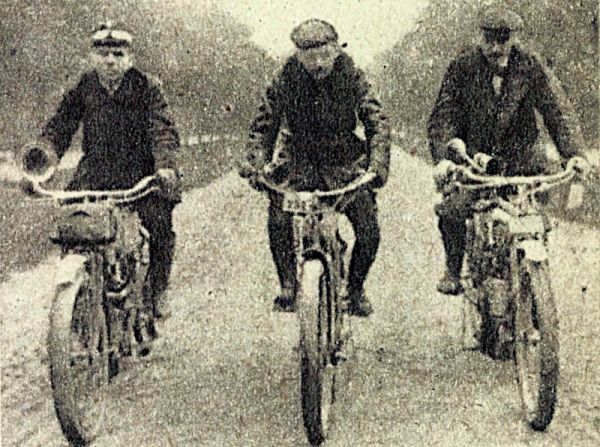Lechner Attila, Hódossy Jenő és Beszédes Jenő, az első magyar országúti motorkerékpárverseny helyzettjei. A győztes Hódossy Jenő, 4 lóerős kéthengeres Puch-ján több mint két és félóra alatt futotta be a 102 km-es távot