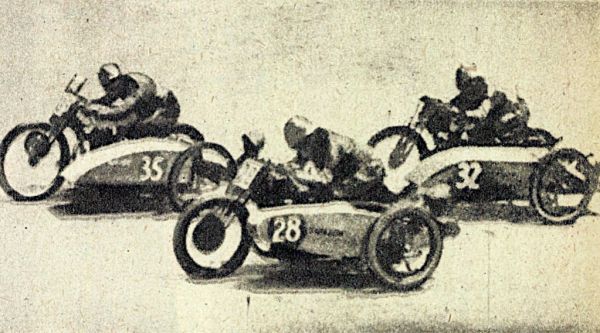 Ez a felvétel a Brookland pályán készült, a 200 mérföldes oldalkocsi versenyen. Hogy mi is van érdekes ezen a képen? Az utas hasmánt fekszik az oldalkocsiban arccal – a kipufogott gázok felé…