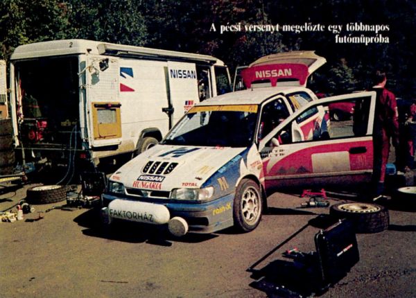 A Nissan a nyolcvanas évek végén határozta el, hogy egy teljesen új fejlesztésű, korszerű géppel tér vissza a rali-világbajnokság porondjára. A VW Golf méretű Sunny típust választották alapnak, és abból homologizálták rekordidő alatt az összkerékhajtásos, turbós sportváltozatot, amelyből aztán ismét csak szenzációsan rövid idő alatt állították kerékre az A csoportos raliautót. Sajnos a fejlesztés első fázisait Japánban végezték, és az ottani mérnökök elsősorban a megbízhatóságra, a strapabírásra törekedtek, mindent túlméreteztek. Így az első példányok kissé nehézre és ugyanakkor gyengécskére sikeredtek. Ekkor került a további fejlesztés az angliai Nissan sportbázishoz, ahol megint csak rekordidő alatt fogyókúráztatták és izmosították a mokány kis méregzsákot. A berepülőpilóta fontos szerepét Stig Blomqvist kapta, versenyzőként előbb a friss brit bajnokot, David Llewelint szerződtették, majd a forszírozott vb-szereplésre jött a finn Timo Maekinen és a francia Francois Chatriot. A kis Nissan fokozatosan javult, egyre közelebb kerültek a Lancia és Toyota időeredményeihez. Az igazi nagy áttörés, urambocsá!, a hőn áhított győzelem azonban váratott magára. Ennek két oka volt. Egyrészt a két pilóta néhány buta és felesleges hibát követett el, többek között nem fogadták meg Blomqvist tanácsait és beállításait. A másik gond az alapos mérések, tesztek alapján a gumi volt. A Nissant szerződés kötötte egy világhírű gumimárkához, amely korábban igen kiváló gumikat készített sportcélokra is, de a ralisport legújabb fejleményeiből teljesen kimaradt. 1992 őszén a Nissan-központ derült égből villámcsapásként hirtelen lefújta az egyébként egyre ígéretesebb vb-programot. Az igazi okot senki nem tudja, de minden bizonnyal szerepet játszott a kedvezőtlen döntés meghozatalában az általános világpiaci recesszió, a nehéz gazdasági helyzet, és feltehetően a szerencsétlen és megoldhatatlan gumiprobléma is. A sportközpontban dolgozó 150 munkatárs többségét elbocsátották, és a megmaradt tucatnyi emberrel elhatározták, hogy a világszínvonal közvetlen közelébe jutott csúcstechnika bérbeadásával mentik a menthetőt. Nos, ebben a furcsa lélektani pillanatban bukkant fel a láthatáron Nissanéknál a magyar érdeklődés.