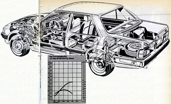 Külsőre (különösen hátulról nézve) a kocsi kiegyensúlyozott „lépcsős” karosszériája – sok építőelem adaptálása révén – okkal emlékeztet az Escortra, mentes minden öncélú, feltűnést keltő díszítőelemtől. Az egyszerűségével is elegáns belső tér igazodik a külsőhöz. Nem meghökkentő, „csupán” egyszerűen kellemes benyomást kelt ez az autó. Minden bizonnyal a dús belső kárpitozásnak, párnázásnak és ütközésenergia elnyelő betéteknek karosszériaelemeknek tulajdoníthatóan a kocsi össztömege viszonylag magas, 1300 kg (a terhelés 350 kg lehet), s ezzel az adottságával nem sorolható az élvonalba. A szériatartozékként beépített felszereléshez egy urh-rádió is tartozik automatikus adóállomás-keresővel és közlekedési információval. (A közlekedési adó önműködően megszakítja bármelyik adás műsorát, és csak a közlekedési információk hallhatók arra az időre.) Külön említést érdemel, hogy a kocsin a hagyományos rúdantennát hiába is keresnénk, mert ilyen nincsen. Szerepét igazán eredeti módon a hátsó szélvédő fűtőszálai látják el „társbérletben”. Méghozzá nem is rosszul, mert hazafelé – még bőven osztrák területen – a magyar rádió műsorát kitűnő hangminőséggel élvezhettük.