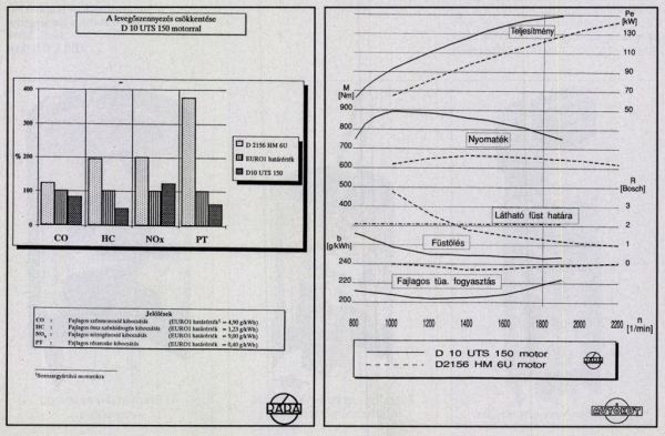 Az átalakított motorok is teljesítik az EURO1 határértékeket, az NO kivételével. Ez is csak minimálisan tér el a jövőre életbe lépő normától (előírás: 9,0 g/kWh). Egyidejűleg csökken a CO-emisszió is, mivel a motor hatásfoka javul. A hatásfok javulás következtében a fajlagos tüzelőanyag-fogyasztás csökkentése mintegy 10%-ot tesz ki. A koromkibocsátás mennyisége motoronként és évente hozzávetőlegesen 400 kg-mal csökken! A mérési adatokból megállapíthatóan a füstcsökkenés 80-90%-os. Ezt igazolják a BKV-nál 1992. április óta szerzett eddigi üzemeltetői tapasztalatok. A BKV szakemberei, gépkocsivezetői véleménye szerint, az átalakított motorral szerelt autóbusz jól gyorsul, hamar eléri az utazósebességet, és kiválóan alkalmazkodik a városi forgalomban megkívánt igényekhez. A busz gázolaj-felhasználása igazolja az előzetes várakozásokat. A motor eddig mintegy 10 ezer km-t futott, és motorolaj-utántöltést nem igényelt. Eddig semmiféle meghibásodást nem észleltek. A motor egyáltalán nem füstül – hidegen sem – és zajszintje műszeres vizsgálatok és szubjektív megítélés alapján is alacsonyabb a szokásosnál.