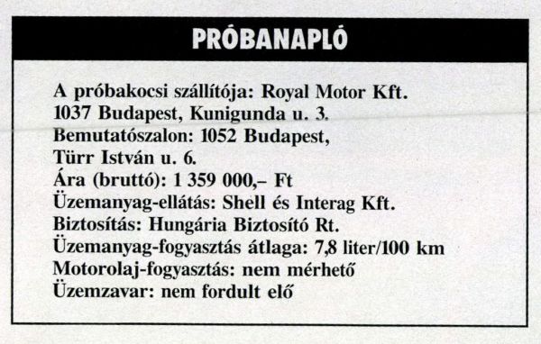 Tetszett ez az autó. Még jobban tetszene, ha katalizátoros lenne. Képtelenek vagyunk beletörődni abba, hogy az importőrök azért nem szállítanak ide katalizátoros autót, mert a vámszabályok megbüntetik a katalizátoros autó vásárlóját, miközben a kormányzat kiemelten fontosnak tartja a környezetvédelmet.