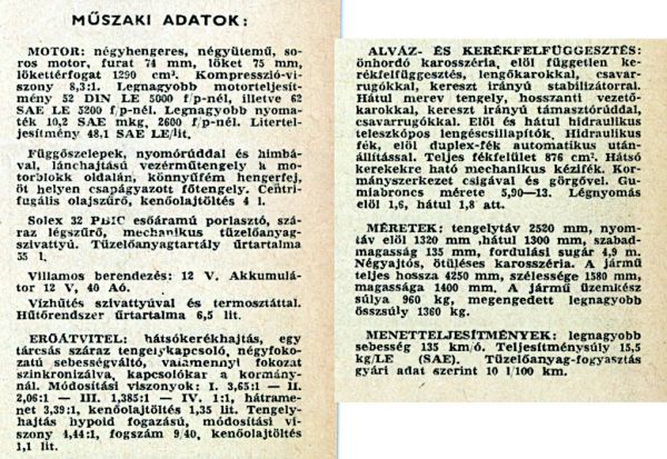 Annak ellenére, hogy az Aronde és 1000-es modellek nálunk a normál kereskedelmi forgalomban megvásárolható típusok voltak, és az egyik budapesti autójavító hivatalos Simca szerviznek van kijelölve, a márka szakosztály vezetőségének még sok olyan feladata akad, amelyek ügyes megoldásával zavartalanabbá tehetik a szóban forgó kocsik üzemben tartását. Jó kapcsolatot épített ki máris a francia gyárral, és ennek egyik bizonyítéka, hogy a napokban bemutatópróbára Pestre küldtek egy új 1300-as modellt. Ezzel a kocsival szerkesztőségünk munkatársa is megtett néhányszáz kilométert.