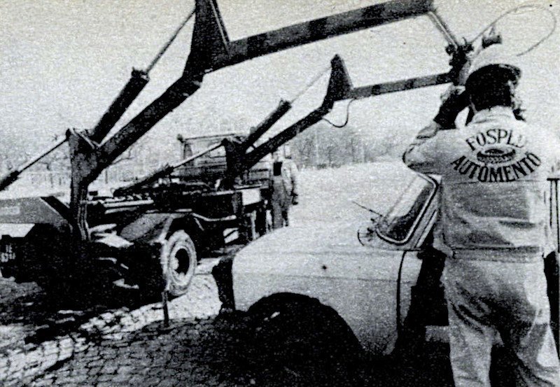 Amíg a roncstelepen az új szerzemények leltárával és az iratokkal bíbelődnek a gépkocsivezetők, egy másik csapat nyomába szegődünk. Ferke Ferenc és Elek János az egyetlen emelőkeretes Isoli kocsival indul a Hősök terére egy Moszkvicsért. Hogy egész nap a várost járják, le sem tagadhatnák: olyan útvonalon raliznak előttünk, amilyen nekünk eszünkbe sem jutna. Ez a Moszkvics sincs jobb „bőrben”, mint az előbbiek. Minden, ami mozdítható és kiszerelhető volt, hiányzik belőle. Még a hátsó kerekeitől is megszabadították szegényt. Az emelőkeret ügyes szerkezet: segítségével pillanatok alatt és könnyen a hátára veszik a gurulásképtelen roncsot a szállítókocsi. Mondanunk sem kell, erre sem kértek közterület-használati engedélyt.
