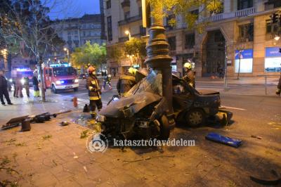 Oszlopnak csapódott egy autó Budapesten, a Károly körúton vasárnap kora reggel - közölte a Fővárosi Katasztrófavédelmi Igazgatóság.