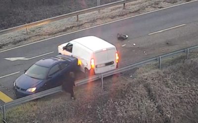 Szombat délután az M1-M7 közös bevezetőjén a Magyar Közút forgalomfigyelő kamerája előtt büntetőfékezett egy kis furgon, melynek következtében három autó…