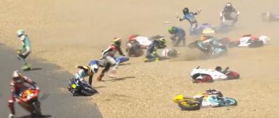Moto3: Húsz motoros esett ki ugyanabban a kanyarban (videó)