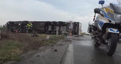 Keresztben felborult egy zöldséget szállító kamion csütörtökön napközben az M0-ás autóúton Soroksár térségében.