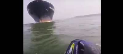 Vérfagyasztó: majdnem maga alá szippantotta a jetskist a teherhajó (videó)