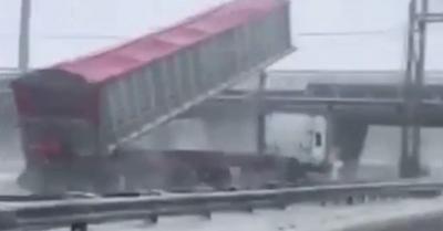 A kamionos elfelejtette lehajtani a konténert, lerobbantotta róla a felüljáró – VIDEÓ