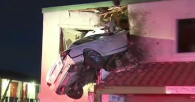 A busz kamerája vette fel, ahogy egy kocsi beesik az első emeletre! – VIDEÓ