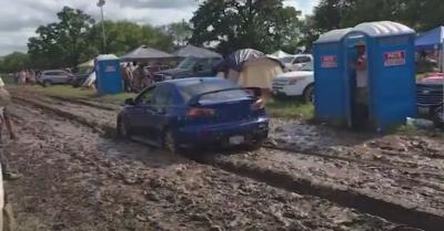 A Mitsubishi Evo beragadt a sárba, a kipufogójánál akarta kihúzni… – VIDEÓ