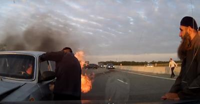 A szemük előtt sodródott ki és gyulladt meg egy autó, tele utasokkal – VIDEÓ