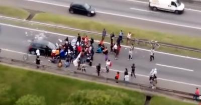 Az autópályán tüntettek, egy kocsi belehajtott a tömegbe – VIDEÓ