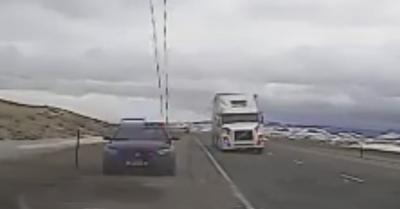 Akkora volt a szél, ráfújta a kamiont a rendőrautó tetejére! – VIDEÓ