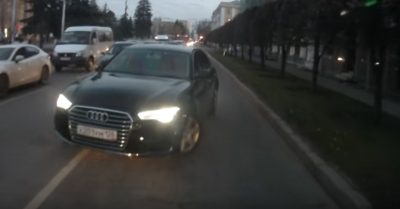 Naná, hogy Oroszországban járunk, ahol egy Audi sofőrje a szembe sávban próbálta átverekedni magát a dugón, ám egy „hősies” vezetővel…