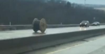 Elszabadult egy óriás huzaltekercs az autópályán, mindenki menekült – VIDEÓ