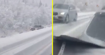 Beláthatatlan kanyar, csúszós út, záróvonal? A Volkswagen akkor is előzni akart, ez lett a vége! – VIDEÓ