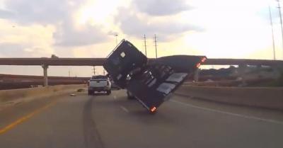 Ijesztő baleset: elkezdett dőlni a kanyarban a tréler, ment vele az autó is… – VIDEÓ