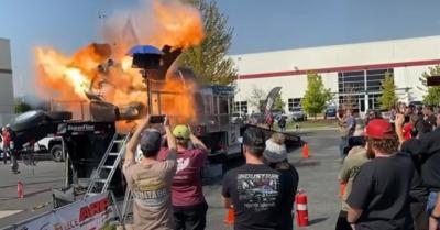Kivitték az autós show-ra a 3000 lóerős pickupot, a bemutató közben felrobbant a motorja! – VIDEÓ