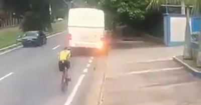 Mikor a biciklisek nem figyelnek: fejjel ment neki a parkoló busznak! – VIDEÓ