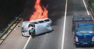 Felborult és lángra kapott az autó: 50 másodperc alatt 3 életet mentett meg a hős, aki a segítségükre sietett! – VIDEÓ