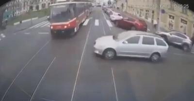 Balról is, jobbról is villamos jött, ő nem lassított: csúnya vége lett! – VIDEÓ