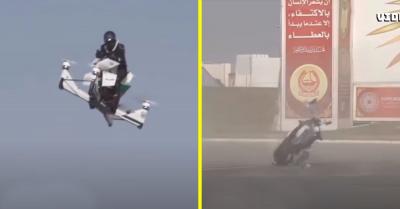 A dubaji rendőrség tesztelte a repülő motorokat. Úgy húsz másodpercig.