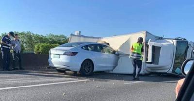 A Teslára bízta magát, az egyenesen beleszáguldott egy útra borult teherautóba – VIDEÓ