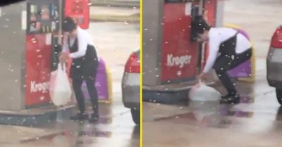 Ilyen őrültet még nem láttál: szatyorban vitte a benzint a kútról! – VIDEÓ