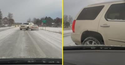 A videó feltöltőjének beszámolója szerint mindegyik autón téli gumi volt.