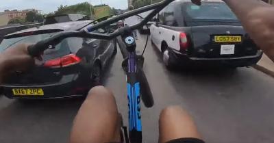 A forgalomban trükköző biciklis nekiment a Mercedesnek, és még ő volt felháborodva! – VIDEÓ
