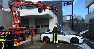 Meggyulladt az elektromos BMW, a tűzoltók fogták, és vízbe bedobták!