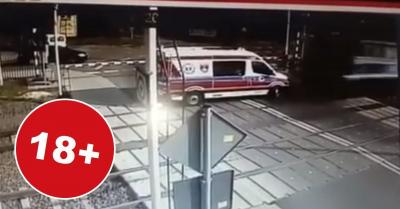Beragadt a sorompók közé a mentő, már nem tudott megállni a vonat – 18+ VIDEÓ