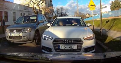 Az Audi sofőrje pofátlanul le akarta vágni a sort, tökéletes büntetést kapott! – VIDEÓ