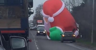 Leengedett a felfújható télapó, 3 órán át állt miatta a forgalom – VIDEÓ