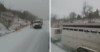 Ilyen trükköt még garantáltan nem láttál, hogy felmenjen az emelkedőn a kocsi a hóban! – VIDEÓ