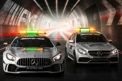 585 lóerős teljesítménnyel és aktív aerodinamikával rendelkezik az AMG GT R kupé alapján épített Formula-1 felvezetőautó.